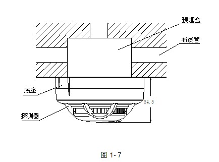 JTY-GM-GST9611海灣消防點型光電感煙火災探測器安裝方式示意圖如圖1-7所示,接線盒可采用86H50型標準預埋盒。